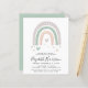 Um convite para chá de fraldas de bolos, divertido e moderno, com uma aquarela abstrato de um arco-íris verde-sábio, laranja e lavanda com corações, o nome da mãe num roteiro de na moda e os detalhes do chá em uma simples tipografia.