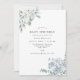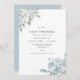 Este chá de fraldas apresenta flores elegantes, azuis e brancas e uma fonte elegante e minimalista. Este convite é perfeito para qualquer evento simples e clássico.