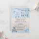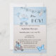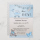 Convite para chás de fraldas elegante, com um pássaro com pram e um ursinho de pelúcia com borboleta em adoráveis cores azul-claro e bege.