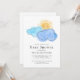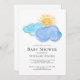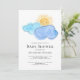 O convite de chá de fraldas deste menino giro é decorado com nuvens de aquarela e o sol. Facilmente personalizável. Original Watercolor © Michele Davies.