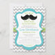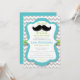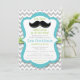É um chá de fraldas de bigode! Este convite apresenta um bigode de hipster divertido com quadro teal e fundo de fenda de cinza. Ah, garoto!
