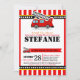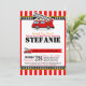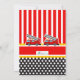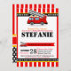 Soe o alarme! Celebre o chá de fraldas do motor de incêndio com o Convite de festas do Motor de Fogo. Esta máquina vermelha e preta de chuveiro bebê apresenta um caminhão de incêndio vermelho em padrões de listras vermelhas. Perfeito para a festa de chá de fraldas do caminhão de bombeiros, a festa de chá de fraldas do motor de incêndio ou a festa de chá de fraldas do caminhão de bombeiros.