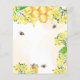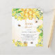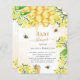 Um fundo branco na moda e ouro de cor d'água. Decorados com espécimes do gênero Bombus, melando mel e favos de mel com flores amarelas, flores e um pote de mel. Com o texto: Chá de fraldas escrito com um moderno estilo escrito à mão. Personalize e adicione o nome da mãe a ser. Ouro e letras pretas. Sexo neutro.