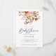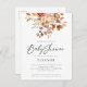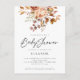 Orçamento Terracotta Florals Convite para Chá de fraldas. Lindas flores de outono e gramíneas de pampas para seu chá neutro em gênero com um roteiro informal definido para o Chá de fraldas e o resto do texto que você pode facilmente personalizar.