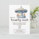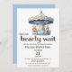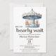 Duplique a alegria e entusiasmo com este encantador convite para chás de fraldas gêmeos "Nós podemos esperar"! Apresentando dois adoráveis ursos peludos sentados em um charmoso carrossel azul, este cartão é a maneira perfeita de celebrar a chegada iminente de garotos gêmeos.