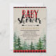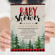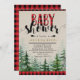 Convite para Chá de fraldas Lumberjack Red Xadrez Boy Com floresta verde e estilo rústico, este convite para lenhador é perfeito para o seu chá de fraldas