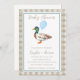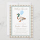 Celebre seu chá de fraldas futuro com este adorável convite para chás de fraldas de pato! Este pato mallard está esportivando um balão azul, fazer perfeito para um chá de fraldas menino.