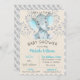 Um convite para o chá de fraldas de elefantes. As cores incluem azul e cinzas. Excelente para chás temáticos de animais selvagens ou safari. Barato personalizado convites para bebê elefante impressos personalizados com seus detalhes. Use as ferramentas de design para personalizar o texto, editar as fontes e as cores ou adicionar suas próprias fotos para criar um convite de festas de Chá de fraldas Boy elegante.