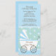 Comece seu evento bem com nosso convite para o Chá de fraldas na moda com uma adorável carruagem de bebê em um fundo azul pálido. Apenas personalize com suas informações e você está pronto para ir! Itens correspondentes, incluindo a postagem do chá de fraldas, adesivos favoritos, cartões de agradecimento e obrigado que você adesivos também estão disponíveis em nosso compro. ©Blackleaf Studio