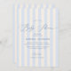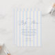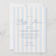 Celebrar os pais com este Convite de Chá de fraldas Elegante Blue Stripes Boy. Apresentando listras azuis clássicas e roteiro moderno, este design eterno é perfeito para dar boas-vindas a um menino de estilo. Personalize com os detalhes do evento para criar um convite chic e ponderado para amigos e familiares. Ideal para chás tradicionais, festas de jardim ou reuniões elegantes que destacam um tema refinado e encantador de bebês.