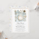 Convite para Chá de fraldas Elegante de Natal Holiday Baby Brunch - com um elegante lugar destacado em ouro com sotaques azuis de geada e verde natural. A caligrafia de script elegante também é apresentada. O convite fará parte de uma coleção.