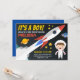 Incêndios para seus convidados com este chá de fraldas temático do espaço legal convidam com um astronauta fofo e um foguete decolando com elementos coloridos do espaço. Basta adicionar os detalhes do seu evento neste modelo fácil de usar para torná-lo um convite de tipo único.