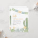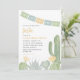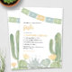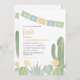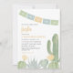 Um chá de fraldas de fiesta para honrar a futura mãe. Este convite temático do cacto apresenta um belo design do deserto de aquarela em tons delicados de amarelo, azul empoeirado e verde deserto. Perfeito para uma festa de chá de fraldas a sudoeste ou moderna.