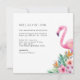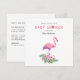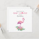 Celebrar com talo tropical e charme de aquarela. Este convite de chá de fraldas dobrado apresenta um flamingo cor-de-rosa cercado por hibisco e palmeiras, perfeito para honrar a futura mãe no estilo. O texto totalmente editável permite que você personalize cada dentro de detalhes e saia.