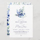 Chá de fraldas floral azul em estilo minimalista com buquê de flor azul e padrão de volta. Você pode personalizar este convite com seus próprios detalhes na seção "Personalizar este modelo".