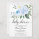 Convite para Chá de fraldas Floral Azul Elegante