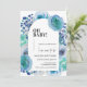 Celebre a chegada do seu bebê com nosso charmoso convite para chás de fraldas florais. Este convite impresso ou digital apresenta um belo design floral azul que adiciona um toque de elegância ao seu evento especial. Nosso modelo de convite é perfeito para hospedar um chá de fraldas memorável e na moda que impressionará seus convidados. Prepare-se para dar as boas-vindas ao seu pequeno pacote de alegria em estilo com o nosso chá de fraldas de convite azul.
