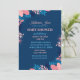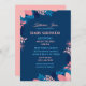 Convite para Chá de fraldas Floral Cor-de-Rosa Elegante Marinho. Este convite elegante está rodeado de bonito flores rosa com sotaques azuis. Adicione os detalhes da sua parte para ver como será o seu convite antes da compra. Nosso modelo torna fácil mudar o texto do seu chá de fraldas.