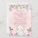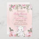 Elefante de bebê bonito com chá de fraldas de flores de aquarela. Esses convites para chuveiros de bebês são facilmente personalizados para seu evento simplesmente adicionando seus detalhes.