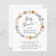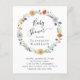 Convite de chá de fraldas de inspiração boho, de fácil orçamento, com uma camada aquosa de flores silvestres florais e "Chá de fraldas" num elegante roteiro de troca.