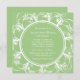 As espirais florais de rico rodeiam o tipo neste convite. É apresentado no papel de base; no entanto, recomendo o peso e a textura do papel de linho.