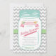 Moderno e doce, este convite de chá de fraldas mason jar é perfeito para honrar uma futura mãe! Possui fundo de fêmur de cinza leve, banda de sotaque de bolinhas verde, e um jarro de pedreiro de chá mostrando seu texto!