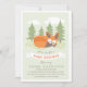 Adoráveis convites para chuvas para bebês com temas de raposa desenhados por Shelby Allison.