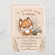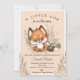 Um filhote está a caminho. Queda, outono, Pequeno Chá de fraldas de raposa, convite com uma raposa de bebê, abóboras e pampas. Chá de fraldas de convite para modelo totalmente editável.