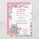 Convite para Chá de fraldas Hippo Floral Rosa-Rosa