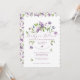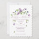 Bebê na flor! Este convite para chá de fraldas bonito inclui flores primavera a aquarelas, incluindo lilases, jacinto de uva, tulipas e trevo, colocadas contra um pano de fundo branco nítido. Reforçados por uma escrita elegante e uma fonte clássica, as roxas vibrantes e verdes frescos artesanato uma cena encantadora, perfeita para anunciar a alegria de um novo começo.