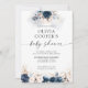 Convite para Chá de fraldas marinho Azul e Dusty. Este Convite para na moda e Chá de fraldas elegante apresenta um lindo Marinho de cor d'água pintado manualmente Azul e Rosa Dusty Floral. Localize itens correspondentes na Coleção Floral Marinho Azul e Dusty Rosa.