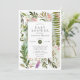 Folhas lindas de samambaia com flores cor-de-rosa chá de fraldas convite para um chá neutro em relação ao gênero.