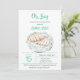 Este convite para o Chá de fraldas Boy com um toque de aquarela desenhando as pequenas pernas de um bebê recém-nascido com cor de menta uma fonte e o verso é perfeito para sua celebração. Personalize-o e aproveite-o.
