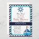 Greves e chá de fraldas de veleiro náutico com tema náutico, um veleiro e faixas de guevron azuis.convite para rapazes
