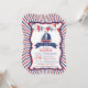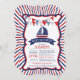O chá de fraldas do chip moderno cortou o convite, apresentando uma faixa azul e vermelha e uma bolinhas de veleiro em um fundo vermelho, branco e azul de faixa radial. Nosso doce design chá também apresenta um moderno pendente de bunda de bebê com bolinhas e âncora. Sacudir o nosso convite para o chá de fraldas de verão para ver a correspondência para um toque especial extra. Na moda e chá de fraldas de barco tropical divertido para um chá de fraldas para bebês, chá de fraldas neutro em gênero ou chá de fraldas para raparigas.