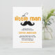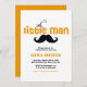Um homenzinho está a caminho! Convide familiares e amigos para o seu evento com este convite personalizável de chá de bebê. Apresenta uma tipografia fofa com sotaque de bigode. Personalize este convite de chá de fraldas laranja adicionando seus detalhes. Este é um convite para o chá de fraldas Boy está disponível em outras cores.