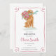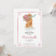 Estes convites apresentam um retrato de aquarela adorável de um Retriever Ouro segurando um buquê de flores cor-de-rosa.