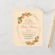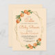 Este convite para chás de fraldas temático dos citros apresenta um quadro geométrico dourado adornado com laranjas aquáticas. O texto personalizável está no moderno roteiro laranja de escrita manual e sans serif preto num fundo cor de laranja pastel. Personalize-o com o nome da futura mãe e os detalhes do chá. A parte traseira da placa é uma sombra de laranja correspondente. Ideal para um chá de fraldas de verão!