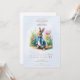 Uma ilustração encantadora de aquarela de Peter Rabbit, retratada como adorável e clássica. O conto clássico de Peter Rabbit é o tema perfeito para o seu chá de fraldas. O convite apresenta um belo desenho aquoso do personagem, Peter Rabbit, acentuado com um arranjo de verde escovado. Os detalhes do seu chá são exibidos em uma variedade de fontes complementares.