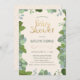 Este convite personalizável para chás de fraldas apresenta uma borda ilustrada de flores verdes, cinzas e azuis com um fundo de cor creme (que pode ser alterado para o seu gosto). O texto "Chá de fraldas" está em uma fonte dourada e moderna. O(s) nome(s) da(s) futura(s) mãe(s) ou futura(s) mãe(s) e os detalhes do evento podem ser personalizados para o seu evento especial. O verso é uma cor de creme correspondente (também alterável) com um padrão de quatrefoil de ouro sobreposto.