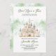 Tenha uma celebração real com este elegante Convite para Chás de fraldas Príncipe. Apresentando um castelo verde, perfeito para acolher seu bebê com um toque de magia e realeza. Quer você esteja planejando um chá de jardim de conto de fadas ou um evento interno real, este convite cria um começo mágico à história do seu bebê. BBS1077