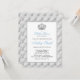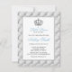 Chá de fraldas de príncipe azul, príncipe branco e pastel que você pode personalizar. Coroa prateada com design suave com design de padrão tufado - um toque de elegância real! Um pequeno príncipe está a caminho! Cartões de convite para modelo editáveis. Todo o texto pode ser editado, tamanho e cor da fonte (ou excluir quando não for necessário).