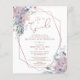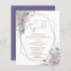 Elegante convite para chá de fraldas de menina, amigável em orçamento, impresso em papel leve com lindos buquês florais de flor silvestre, em tons de roxo, violeta, lilac, blush, pêssego, azul empoeirado e rosa empoeirado e verdes acentuados com um quadro geométrico de ouro rosa e cor de texto com o título IT S A GIRL em uma tipografia moderna e elegante escrita manual. Ideal para entregar aos convidados. AJUDA: para obter assistência com a modificação/personalização do design, transferindo o design para outro produto ou, se você quiser coordenar itens, entre em contato com o designer ANTES DE PEDIR por meio do Zazzle Chat ou makeitaboutyoustore@gmail.com.