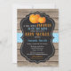 Chá de fraldas Rustic Pumpkin Fall Boy Invitation com fundo de madeira rústica. Para mais personalização, clique no botão "Personalizar" e use nossa ferramenta de design para modificar este modelo.