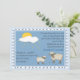 Bonito convite para chás de fraldas, com uma cópia digital de uma pintura de caroço mostrando uma mãe de ovelha e bebê contra um fundo azul ensolarado. O quadro branco verificado envolve o convite. Personalize todo o texto na frente e de volta para atender às necessidades do seu partido. Disponível com sotaques cor-de-rosa.