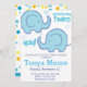 Convite para Chá de fraldas Twin Elephant (rapazes)