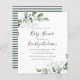 Convide amigos e família a honrarem a futura mãe com este convite para Chás de fraldas com barato com folhas de aquarela eucalipto. **POR FAVOR LEIA ANTES DE COMPRAR** 1. Medidas de papelaria orçamental de 4,5" x 5,6" e dentro ajustado e envelope A6. Você pode adicionar envelopes brancos ao seu pedido. 2. Cada folha é um item - não é necessário corte. 3. O estoque de cartão é branco brilhante, com acabamento semirbrilhante e um peso de 110 lbs, adequado para papelaria. 4. NÃO recomendamos que você escolha a opção de papel satírico, pois é um papel de 80 lb muito mais fino, que é mais parecido com as páginas de revistas do que o estoque de cartão. 5. Se você fizer alterações e o design for cortado ou não parecer direito na tela, use o Serviço de Design ao vivo para ajudá-lo a corrigi-lo. 6. Seu pedido vai diretamente para as impressoras. O que você vê na tela é o que será impresso e enviado a você. Verifique triplamente se há erros de ortografia ou informações incorretas antes de fazer seu pedido.