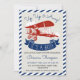 Este convite de chá de fraldas de avião clássico apresenta faixa e um plano vermelho. Design simples mas fofo para o chá de fraldas de um menino. Este convite para chás de fraldas de avião vintage está pronto para ser personalizado.
