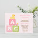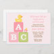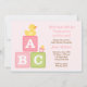 Este convite de Chá de fraldas bonito contém presentes de bebê cor-de-rosa e verde e um pato de borracha numa carroça. Este convite de chá de fraldas moderno e divertido é perfeito para qualquer mãe ser.
