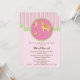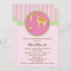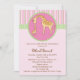 É um convite bonito. Tem uma girafa de mãe e bebê em uma pose amorosa. As listras e o fundo do bolinhas adicionam um toque moderno.